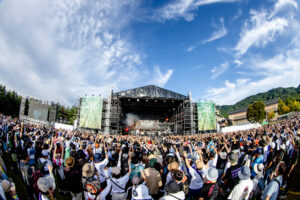 まずはACIDMANのライブでも欠かすことのできない一大バラードソング「世界が終わる夜」を披露した。大木と村松が交互に歌い継ぎ、2サビでは二人のハーモニーで魅了、Cメロからラスサビへと向かうクライマックスも実にエモーショナルだ。そしてアウトロで入ってくるストリングス、完璧。これは泣く。