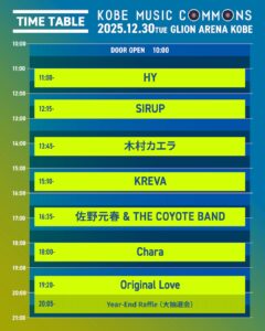 12月30日(火)にアリーナGLION ARENA KOBEで開催される新たな音楽イベント『KOBE MUSIC COMMONS 2025』の最終出演アーティストが発表された。