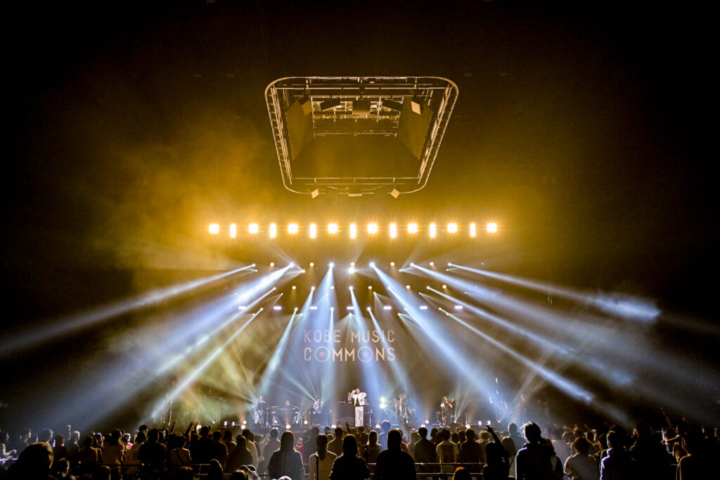 『KOBE MUSIC COMMONS 2025』は、神戸の最新ベイエリア・TOTTEIに昨年春オープンしたGLION ARENA KOBEを舞台に、時代を超えてグッドミュージックを響かせる7組のアーティストが登場。転換中のロビーでも2組のミュージシャンがDJで盛り立てたほか、会場外では地元の人気飲食店が並ぶ「神戸・三宮 名店横丁 肉推し祭 in TOTTEI」を実施。17時からは「神戸TOTTEIイルミナイト」の光のアートがTOTTEI PARK緑の丘で煌めくなど、お楽しみ満載の中7つのライブが行われた。